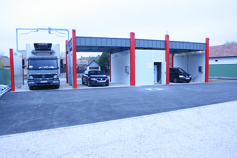 Az autómosónk felépítménye egyedi fejlesztésű igazán exkluzív kivitelű könnyűszerkezetes épület. Az épület teherhordó pillérei, tetőfödémek tartószerkezetei horganyzott acél zártszelvényből, a tetőfödémek merevítő szerkezetei szintén horganyzott acélból készültek. A vázkitöltő falak, valamint a falburkolatok purhabos szendvicspanelből, a tetőfödémek térelhatároló szerkezetei pedig acél trapézlemezből készültek.